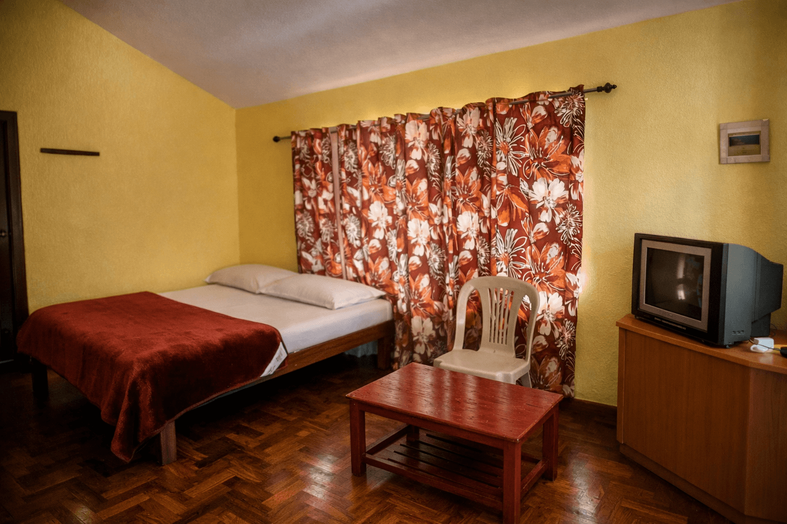 Experience a warm, inviting room that blends cozy interiors with modern amenities for a restful getaway.